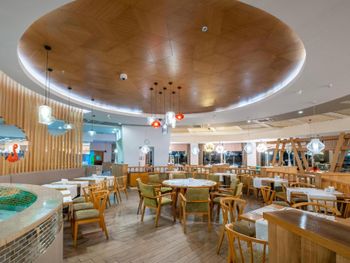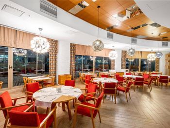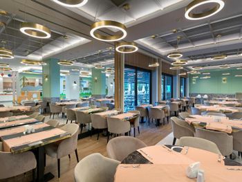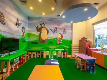 Не во всех, но в некоторых детских бассейнах вода ляденая. Обслуживпние нулевое. В ресторане невозможно найти чистый стол. Не до найдешь и не допросишься у официантлв вилки и ножа. А те что дают -грязные с остатками еды. Общий ресторан очень не уютный. Размещение еды, посуды - очень не комфортное. Напоминает столовку.