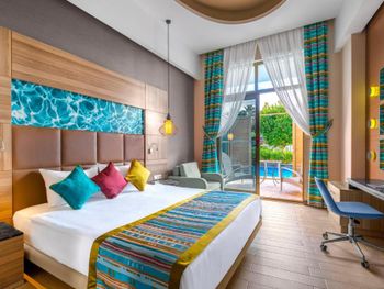 Прекрасный отель для всех ! Огромная территория, много бассейнов,аквапарки, своя дискотека под открытым небом! <3 Хороший сервис ,приветливый персонал! Любим этот отель всем сердцем! Будем возвращаться сюда не раз!)