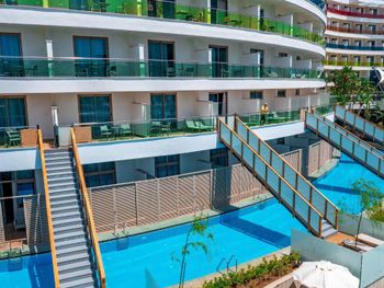 На территории детский аквапарк с подогреваемым бассейном, ещё 2 аквапарка на берегу моря, за трассой. Очень красивый основной подземный переход.