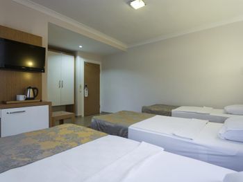До моря 5 минут пешком. Лучший пляж № 11 без плит, песчаный и практически без гальки. Номер чистый, ежедневная влажная уборка и смена полотенец. Огромная и удобная кровать. Есть российские каналы ТV. Очень хороший Wi-fi на всей территории и в номере. Отличный коллектив ресторана, работают слаженно и очень доброжелательны. Всегда в свободном доступе не ограниченное количество воды и айрана. Во внутреннем дворике есть теннисный стол с принадлежностями. В отеле соблюдают санитарные нормы. Всю еду накладывают только сотрудники и приборы в индивидуальной упаковке.