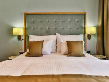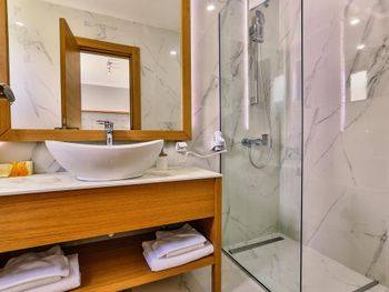 Завтраки крайне скудные. В 8 утра к нам в номер без стука вошла уборщица. В душевой не справляется слив, вода доходила прям до кровати в спальне. Смыв в бочке унитаза заедает. Светильники в спальне и розетки не работают. Подушек куча, но все большие и очень плотные. Отель этих денег не стоит