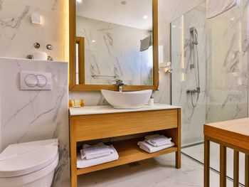 В номерах в Hotel Lusso Mare by Aycon установлен кондиционер, телевизор с плоским экраном и сейф. Среди прочих удобств — письменный стол, чайник и мини-бар, а также собственная ванная комната с душем. В собственной ванной комнате есть бесплатные туалетно-косметические принадлежности. Гостям Hotel Lusso Mare by Aycon предоставляются постельное белье и полотенца.