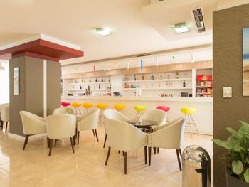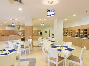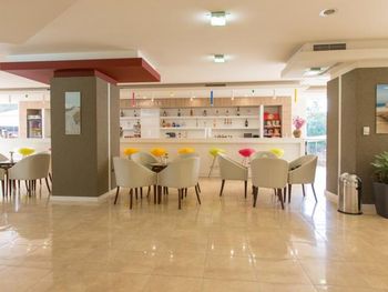 Из минусов очень много что можно сказать, не хватило мест чтобы сесть покушать с детьми на руках и коляскои спускаться постоянно с пятого етажа на первом было очень тяжело так как лифт вечно занят или не работал, долго идти на море по факту 1 километр точно есть до пляжа а обратно еше тяжелее так как поднимаешься в горку, в последний дни пиццу детям давали только по два кусочка и все , само место очень грязная и вонючая от канализации, цены очень превышаны, мы точно в это место никогда не приедем больше!!!