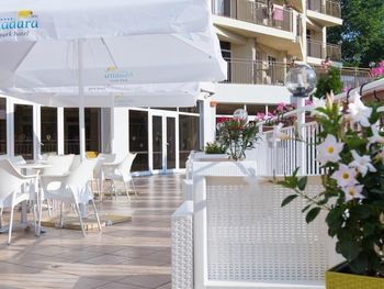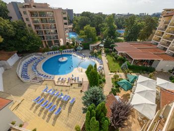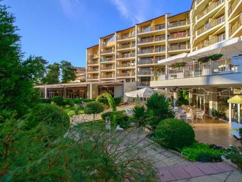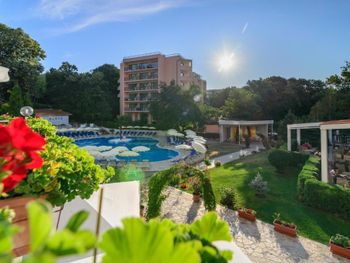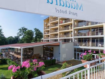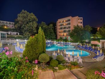 Madara Park Hotel offers a rare combination of tranquility, space and greenery in the heart of Golden Sands. Set within a large, beautifully landscaped garden with extensive lawns, the hotel provides a peaceful park-like atmosphere — an ideal setting for families, couples and guests looking to relax close to the beach.