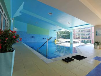 outdoor swimming pool with a children’s section and a seasonally heated indoor pool;