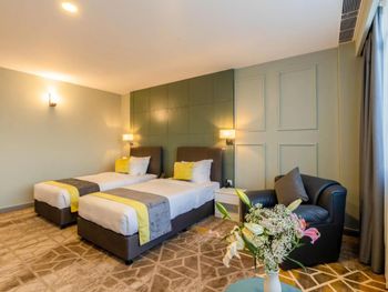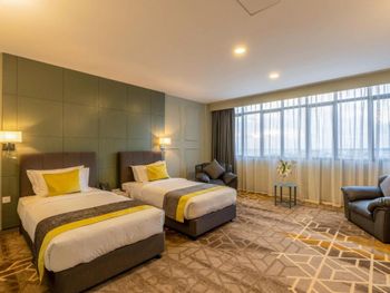 Просторный номер, с двумя детьми отлично разместились. Отелю спвсибо за 2 бесплатные дополнительные кровати.