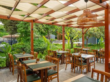 В отеле работает ресторан, где в течение всего дня сервируют «шведский стол» с турецкими блюдами и изысками интернациональной кухни. Гости могут отдохнуть в турецкой бане или сыграть в бильярд. Кроме того, на территории отеля работают теннисный корт и фитнес-центр с кардиотренажерами.