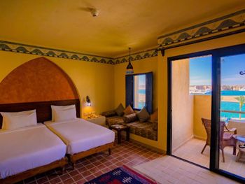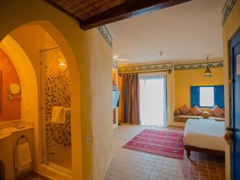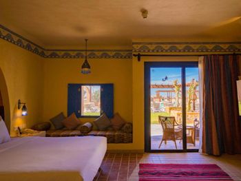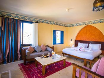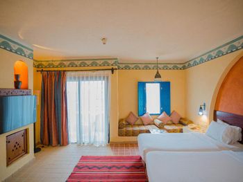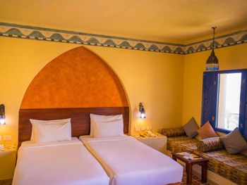Все номера отеля оформлены в нубийском стиле и располагают балконом либо террасой с видом на бассейн, сад или море. В каждом установлен телевизор со спутниковыми каналами, мини-бар и гардероб. В отдельных номерах имеется восточный гостиный уголок с диваном.