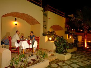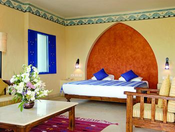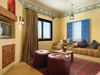 Все номера отеля оформлены в нубийском стиле и располагают балконом либо террасой с видом на бассейн, сад или море. В каждом установлен телевизор со спутниковыми каналами, мини-бар и гардероб. В отдельных номерах имеется восточный гостиный уголок с диваном.