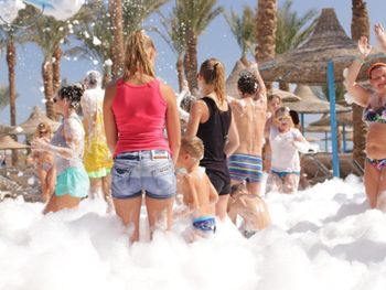 Хороший пляж. Он закрыт от ветра. Песчаный. Подойдет и детям и пенсионерам. Хорошая и активная анимация. 70% отдыхающих - русские. Заселили раньше. Выселили на 1 час позже.