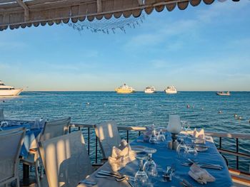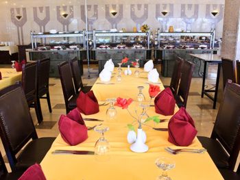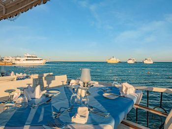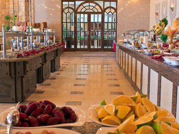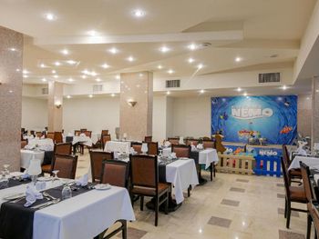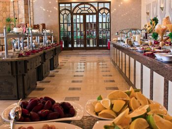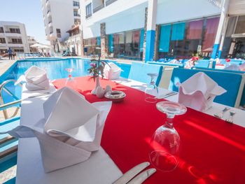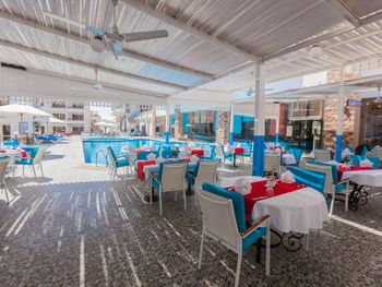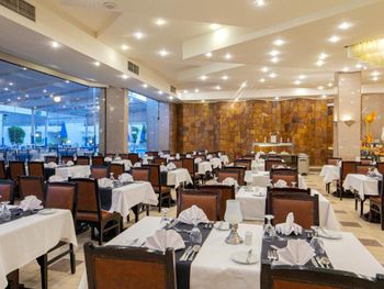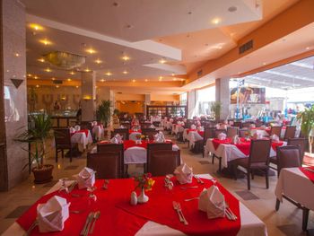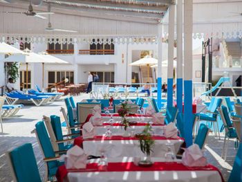 Курортный отель Marlin Inn Azur предлагает своим гостям обслуживание по системе «все включено» с питанием, закусками и напитками в течение всего периода проживания. На территории работает несколько ресторанов, в том числе главный ресторан, рыбный ресторан и ресторан итальянской кухни. Гости могут заказать разнообразные напитки в любом из баров отеля, среди которых лобби-бар, бар у бассейна, бар на пляже и бары Joker’s и Whisper.