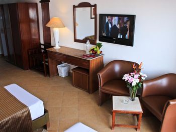 Половина номеров без балконов. В номерах нет ничего для того, чтобы повесить сушиться белье или одежду. В гостинице нет стеклянных стаканов, кружек из керамики, стаканов из твердого пластика. Для холодных напитков - одноразовые пластиковые стаканчики, для горячих - бумажные. Плохая уборка номеров. В моем номере в ванной комнате были очень мелкие муравьи и один 5-сантиметровый таракан. Персонал, нагло просящий денег, и работающий спустя рукава (я про уборщиков номеров). На пляже, да и на всей территории отеля очень много назойливых мух. Отвратительное питание. Отравился - температура 39, диарея, 3 дня в лежку. Очень медленный WiFi - скорость не более 70 kb/s.
