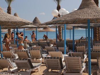 Много людей. Мест на пляже не хватает, треть лежало "забиты" полотенцами. Наказывать надо. А Н А П А