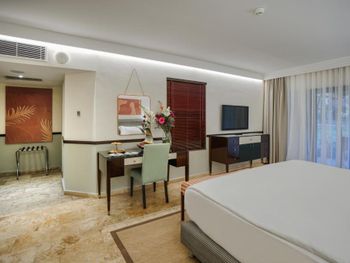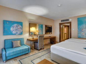 Персонал на ресепшене даже не пытаешься сделать вид что вам рады или же хотят с чем то помочь. На все просьбы и вопросы было недовольное лицо с ответом а что я могу сделать . Половина персонала не говорит ни на английском, ни на русском. Уборщики отдельный вид, убирались практически мы сами. Каждый день одна и также срединно качества еда. Отель не тянет на 5 заезд от слова совсем. Нет рум сервиса( ни платного, ни бесплатного ) . Люкс номера почему-то находятся в самой дальней от моря части . В один день на несколько часов в отеле закончился и лёд и вода . Отелю нужен ремонт и нормальный менеджмент .