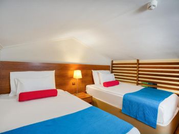 Абсолютно не понравилось отношение персонала, все очень не приветливые и не доброжелательные, начиная от администратора, который Вас заселяет до горничной. Уборка в номере очень слабая, полы не моются вообще. Неоднократно нас оставляли без полотенец, приходилось бегать их искать. Феном пользоваться невозможно,он в ужаснейшем состояние. Подушки очень маленькие и не удобные.