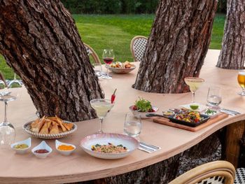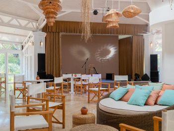 Красивая, большая территория, все в зелени как в заповеднике. Доступный по цене и качественный спа центр. Услуга шатёр на пляже с обслуживанием за 50 евро в день была очень удобная и комфортная для нас с маленьким ребёнком.