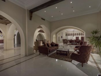Была пересадка в Шарме 7 часов поздним вечером. Удобное расположение, около аэропорта. До туристической площади 5-10 минут на такси, до старого города очень далеко.