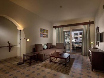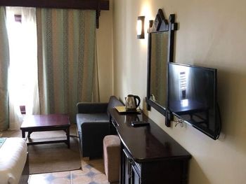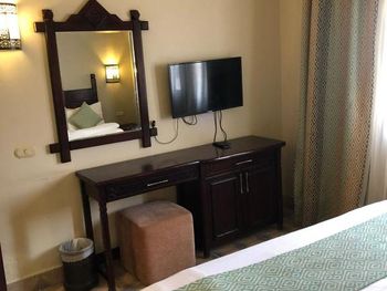 В номерах очень грязно. Две комнаты, одна комната с двуспальной кроватью, вторая с диваном. Хорошо и просторно. Кондиционер работал прекрасно. Телевизор есть российские каналы. В ванной комнате, душ.лейку на скотч прилепили. Брала без питания. На территории симпатично. Бассейн чистый. В целом в соотношении цены и качества не плохо. Но далековато до магазинов, кафе и пляжа. Два раза в день ездит трансфер до пляжа и обратно. Можно подстроиться.