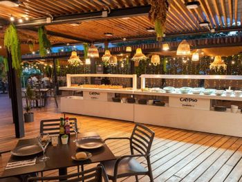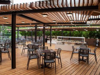 В питание не входят напитки, это ужасно, даже воду нельзя взять, напитки нужно покупать на входе, а потом только с чеком - на баре. Это испортило впечатление в целом. На баре пожилой мужчина, не мог нам объяснить где взять воду и так и не налил, хотя такая возможность думаю у его была. Камера хранения за доп. плату.