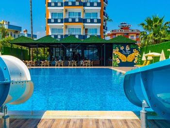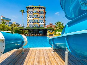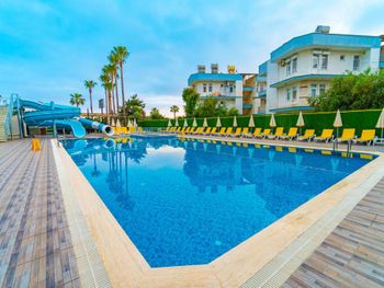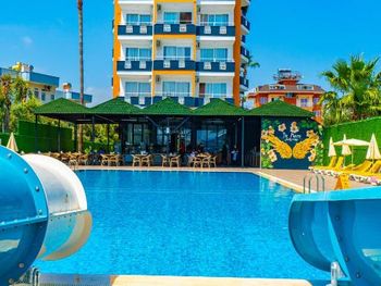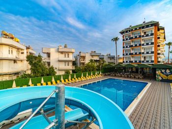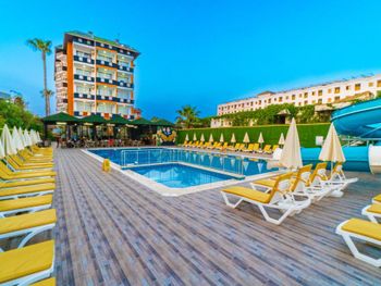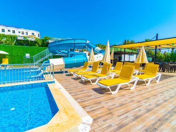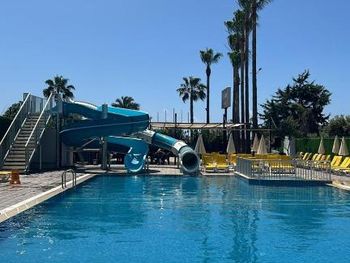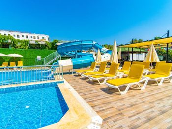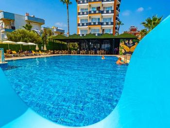 Хороший бассейн с горкой, питание, приветливый персонал. Клиенты в большей части местные турки. Иностранцев очень мало. Формат безалкогольный, поэтому атмосфера дружелюбная.