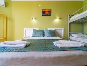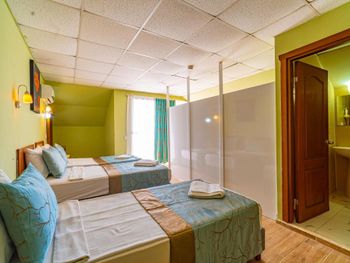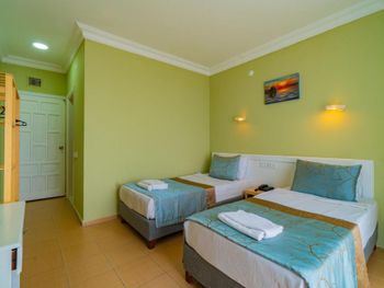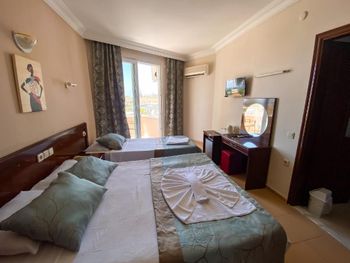 Номера требуют ремонта. Все разваливается, невозможно взять в руки. О душе вообще молчу. Крепитель сломан, мило разбавленное с водой. Уборка- это громкое слово для этого отеля. Когда заехала, нашла резинки для волос, волосы и пыль с три пальца, а также немытые зеркала. Единственное, что во время проживания, меняли полотенца (они уже были с пятнами), постель и убирали мусор. Ставили воду и на этом все. Еда тоже себе такая. Но голодным не будешь. Но нужно быть готовым к тому, что много блюд очень острых, много соли и жирного. Сосиски, колбасы лучше вообще не есть. Аниматоров и какой либо программы не было.