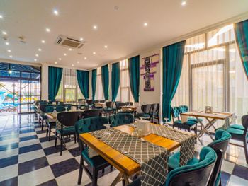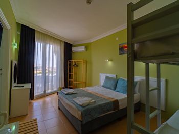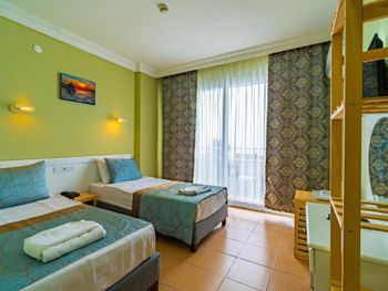 Это наверное худший отель где я был. Несмотря на низкую цену я не ожидал, что будет так плохо. Во-первых, самое важное для меня это санитарные условия, чистота. Этого не было. В номере волосы на полу, постоянно грязная посуда, о чем несколько раз сообщалось персоналу и менеджеру отеля(смотрите видео которое приложил). Слипшиеся от грязи стаканы, помада на стаканах!!! По этой причине вся семья перенесла кишечную инфекцию в этом отеле. Потеряно 5 дней из отпуска! Еда подавалась в переработанном виде несколько раз несколько дней. Поэтому портилась и имела испорченный запах. Из мяса было только куриные крылышки и все! Остальное - трава и овощи. Выбрать из еды нечего. Из вкусного только кола)) Видимо по этой причине в 5этажном отеле было 2-3 семьи и все! Народа нет Чтобы включили горки нужно искать персонал отеля и включать. Интернета нет вообще. Для нас значительный минус. В подземном переходе к морю нет света. На пляже очень грязный пыльный песок . Кроме бассейна и 2 горок нет развлечений. В душе не уходила вода.