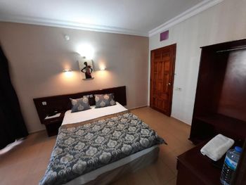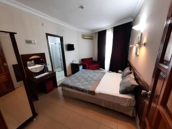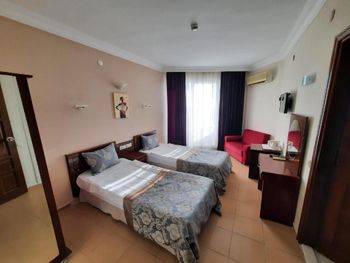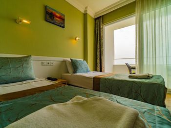 Нас поселили в 210 номер с балконом. Вид с балкона отличный. В номере чисто. Постельное белье чистое и белоснежное.Матрац удобная и спалось отлично. Убирали каждый день и вода была каждый день. Во круг отеля очень красивые улицы и дома.До моря 3 мин через подземный переход прям с отеля. Работники отзывчивые и дружелюбный. Во средам рядом базар ( вещи и продукты- не дорого)