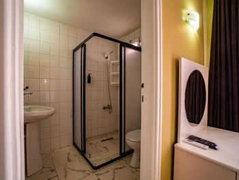 Старая ванная комната , что постоянно из душевой кабины выливалась вода , а так чисто было приятно а отеле