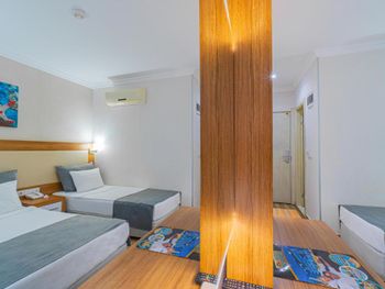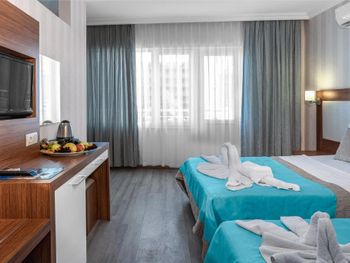 Отдыхали в этом отеле пару лет назад. Сейчас все изменилось. Заселили в старый корпус, комнаты маленькие, сантехника тоже, но это терпимо и особо неудобств не доставляет. В описании номер 33 кв.м., а заселили в маленький, квадратов 15. Питание испортилось очень сильно. Выбор ограничен, на завтрак даже особо съесть нечего. На ресепшн Елена знает русский, английский, турецкий. Мы заказывали трансфер до аэропорта Газипаша туда-обратно. Стоимость 12-13€. Готовьте сразу купюры, потому как принимать мелочь водитель отказывался. Расположение отличное: через дорогу море, в 5 минутах Мигрос. На ресепшн можно купить за 2$ лежак на пляж, вам выдадут квитанцию и вы ее отдаете на пляже. Отдыхали неделю и не рекомендую этот отель. Возможно после пандемии будут улучшения, но сейчас точно нет.