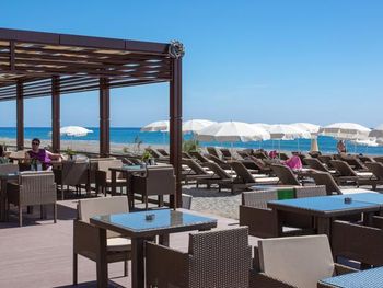 это не пляжный отель. совсем. снял оценку за убитое пляжное оборудование (лежаки и зонты)- за ними не следят и не меняют. отдыхать на пляже не комфортно. при условии, что вход в море плохой и нет понтона, можно было бы сделать ставку на качественную мебель на пляже. аниматоры на пляже - тоже большой минус (вообще не работают). что им мешает хотя бы организовывать волейбол, при том что есть хорошая площадка?