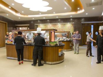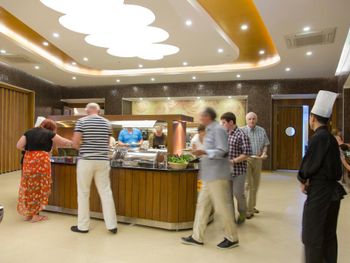 Очень громкая музыка вечером, спать невозможно. Нелепая примитивная анимация в стиле колхозного дома культуры. Дерзкий персонал, которого все время нужно ставить на место. Глупая беспомощная девочка на ресепшн, которая регистрировала меня 30 минут. Однообразная еда, все семь дней меню не менялось, каждый день один и тот же набор блюд. Лифта не дождёшься, один раз попробовал, потом все время ходил пешком. Нет там никаких 5*, это обман.