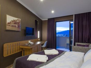 Отель прекрасный, всё понравилось. Находится на пригорке, всем кому тяжело подниматься, не подойдет. Номера чистые, уборка по-моему осуществлялась через день, но если нажать кнопку с просьбой убраться, убираются. К номеру в целом претензий нет, единственный нюанс это кондиционер, если хоть на секунду открыть балкон он тут же выключается и потом приходилось порой несколько раз захлопнуть дверь балкона, чтобы кондиционер снова запустился. По всей видимости там стоит какой-то датчик, который не всегда срабатывал как надо. В номере также был бар, вода бесплатно каждый раз при уборке выставлялась, 1,5 литра бутыль. Телевизор с парочкой русских каналов и каналами на других языках. Не понравилась система вентиляции, когда соседи курили на балконе нам неимоверно сильно тянуло в номер дымом, но тут уже ничего не поделать. Не знаю можно ли было курить на балконах, мы уже не выясняли и ругаться ни с кем не планировали.