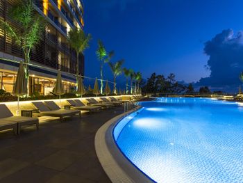 Большая территория, вид с номера. То что отель 16+, делает его спокойным без криков детей, молодежно весело, отель новый и стильный два бассейна , тихий и один с музыкой - супер.