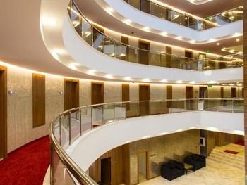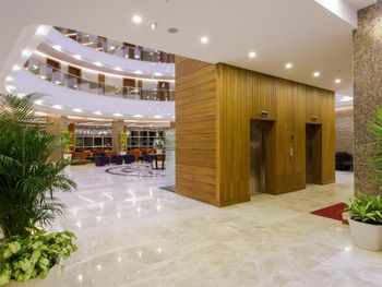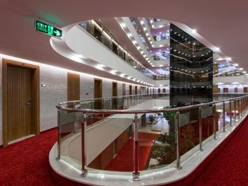 Сам отель большой, комнаты расположены по кругу. Не понравилось как работали лифты. Мы предпочитали ходить пешком, потому что лифт невозможно было дождаться. Он не работал по принципу еду только вверх и по пути собираю, он ездил хаотично. Еще особые умники тыкали кнопки сразу обоих лифтов, вместо одного, который ближе к их этажу и в итоге получалась что к кому-то ехало два лифта. Зачем люди так делают не понятно. Почему не настроить лифт так, чтобы к человеку ехал только один, а не сразу два тоже не понятно. Находились и те, кто еще боковые лифты вызывал за одно. Короче любители ездить на лифте, готовьтесь ходить пешком, потому что дождаться лифт это ад.
