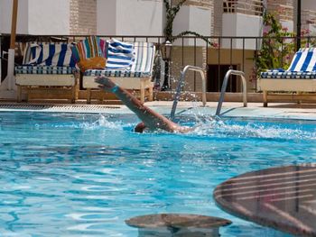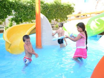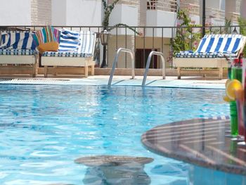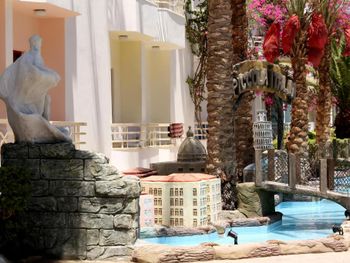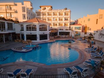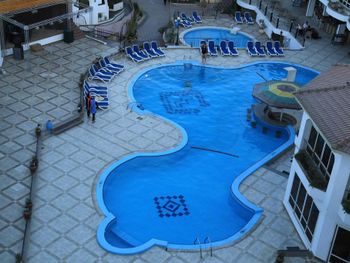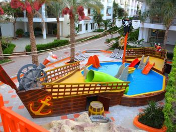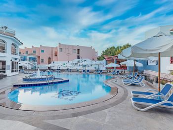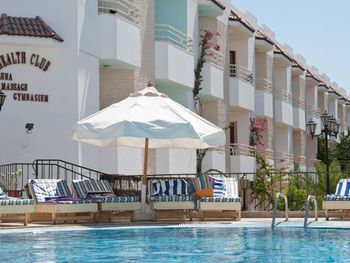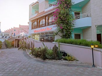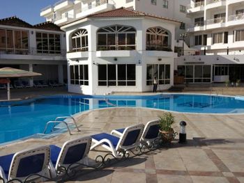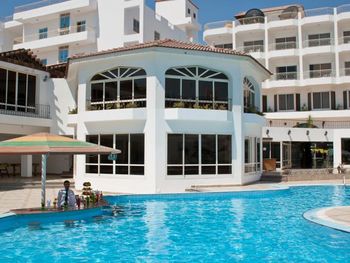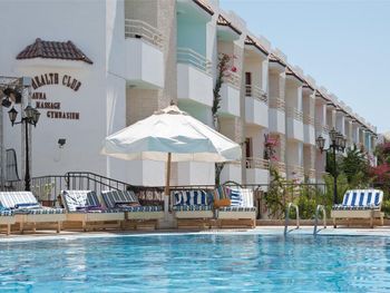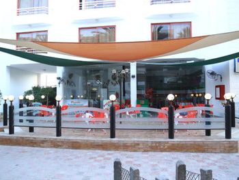 Отель неплохой за свою стоимость. Хотя проживание наше началось с неприятного момента: мы прилетели поздно ночью (о чем предупреждали заранее), и вместо забронированного "стандартного номера с видом на сад и частичным видом на море" нас поселили в номер в главном здании, балкон которого выходил на глухую стену соседнего здания буквально в 1 метре, и снизу шумел промышленный кондиционер из ресторана. Кроме того, отлично слыщно было шум с улицы Шератон. Заменить номер мы смогли только на следующий день в 14 часов, нас переселили в номер, соответствующий заявленным параметрам, на аллее, ведущей к морю. Хотя и здесь было по ночам достаточно шумно от соседнего парка развлечений, где до поздней ночи играла громкая музыка. Но что поделать, это центр города... Анимация "light". Днём на пляже бочча, стретчинг, иногда аквааэробика. Вечером скучно. Отель маленький, нет амфитеатра, проводить шоу негде, около бассейна аниматоры пытаются проводить мини-диско и что-то немножко для взрослых, но нет места. Возят в клубы. Бар у бассейна, где вечером толпится весь отель (так как больше делать нечего) очень маленький, буквально несколько столиков, люди со стаканами сидят на лежаках. Кстати, о стаканах: напитки наливают в бумажные стаканчики по 100 мл: для крепких напитков это нормально, а для пива- неудобно! Многие отдыхающие идут в бар со своими стаканами и термокружками...Пиво нормальное, бутылочное, вино невкусное.