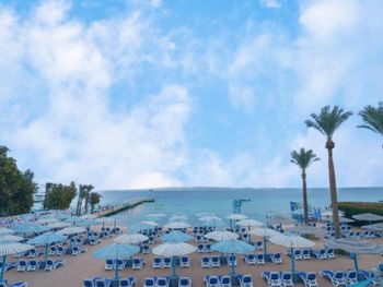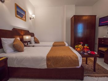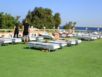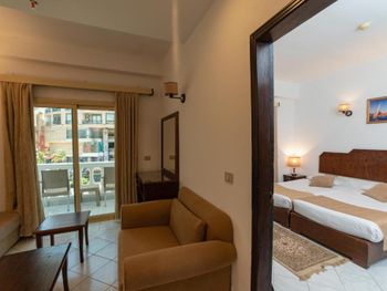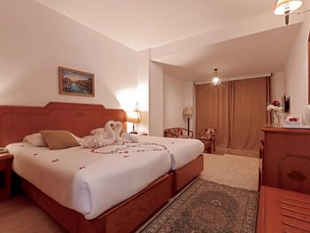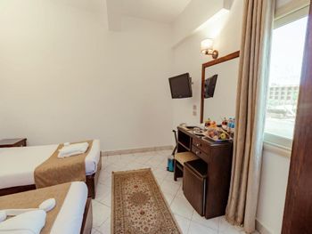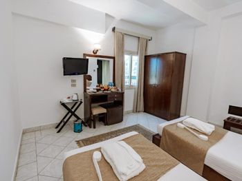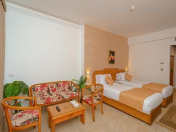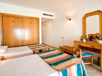 Огромный минус дискриминация по рассовому(национальному)признаку,а именно не граждане Египта платят за номер, почти в два раза больше(вместо 70 баксов за ночь 100). В Турции уже начаты суды по данному признаку нарушения прав человека конвенции ООН!!! Наказать бы этот отель!!! Вместо обещанного номера на 3 человека, так и не допросились постельного белья для второй кровати(не третьей), т.е. постель была только на двуспальной кровати,а на 3ю персону нет. Пылища, волосы в номере,вместо 3х бутылок воды 2. Постель в катышках. Вино красное пакетированное ужас, пиво ощущение что добавили что-то крепкое невозможно пить.Персонал,только под конец приёма пищи приносит заказанные напитки и то только при 100 кратном напоминании.Ресепшн даже английский не знают, айм сорри!!!)) Объясняли на пальцах. А так все очень добрые ребята.