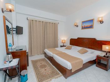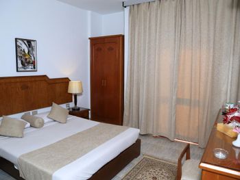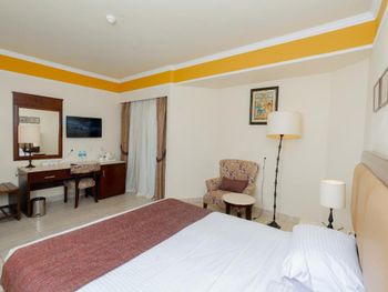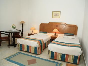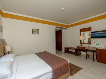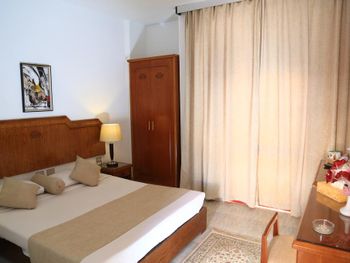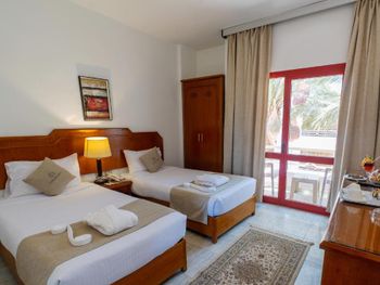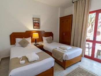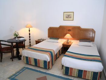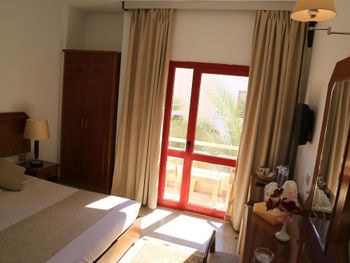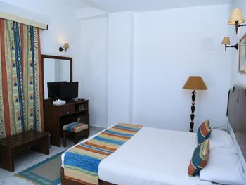 Отель очень старый, номера убитые. Ужасно работал кондиционер, гудел как двигатель самолета, спать просто невозможно с таким. Не регулировался совсем. Вместо двуспальной кровати дали номер с двумя односпальными, хотя в брони стояла двуспальная. Мол нету других, извиняйте. И пофиг им что бронировался отель за пару месяцев. Возможно тупо хотели развести на бакшиш… но из-за двух ночей забили на это. Еда в столовой отвратная. Выбор крайне скудный. Кофе растворимый сублимированный из банки. Напитки в барах в одноразовых бумажных стаканчиках, как в самолете по 100мл. На пляже лежаков не хватает очень сильно. Территория убогонькая. Кто едет на длительный срок, отель не советую от слова совсем!