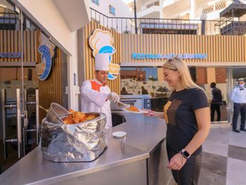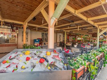 Ежедневно на завтрак, обед и ужин подают «шведский стол» из лучших местных и международных блюд. На территории также работают 3 превосходных ресторана с обслуживанием по меню. В итальянском ресторане Piccola подают блюда итальянской кухни, в ресторане Sea bride с прекрасным видом на море и пляж – блюда, приготовленные из улова дня, а в китайском ресторане – блюда инновационной кухни.