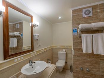 номер старый, ванна как в советских хрущовках. ремонт как будто в прошлом веке сделан. мало света, не очень уютно. Вай фай работает только на ресепшен и еле еле можно отправить сообщения. для минимальных действий конечно хватит, но это прям разочарование. Еда на шведском столе не очень вкусная, резиновая выпечка, окрашенный юппи и растворимый кофе просто ужас. Пляж маленький, не очень красиво и всё какое-то старое, затхлое
