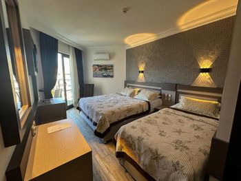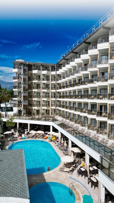 Честно мы были в шоке,какой хороший отель,питание,персонал сделали свое дело и оставили очень хорошее впечатление! Во первых заселили нас в 11 утра без проблем,и предложили два номера на выбор,девушка на ресепшене русскоговорящая-просто ангел! Из еды выбор большой,даже была красная рыба неоднократно! Так же в подарок принесли бутылку красного вина и фрукты в номер) номер очень большой и просторный,каждый день меняли воду,шампуни,производили уборку! Мы честно сказать еще в шоке были что вай фай везде был супер,даже на пляже,шезлонги с матрасами бесплатно,если бронировать через букинг то пляжные полотенца тоже бесплатно,на пляже чай кофе соки и вода! В отеле много людей среднего возраста,а нас была компания девочек 23-27 лет,но все равно было очень весело и мы вернемся еще не раз,так как постоянно отдыхаем в алании! На пляже очень красивые локации и шезлонги из дерева