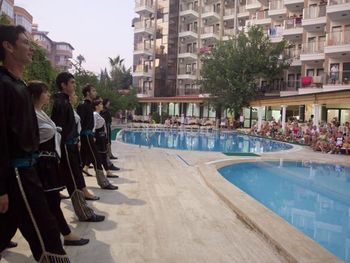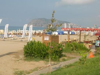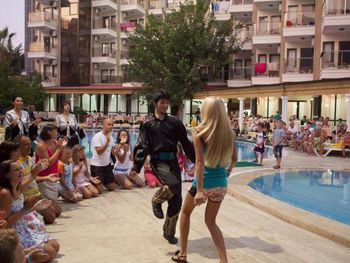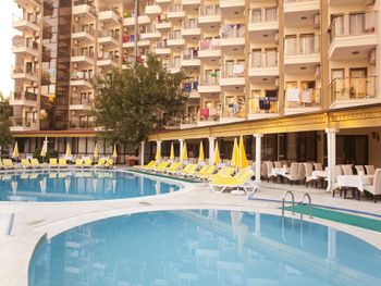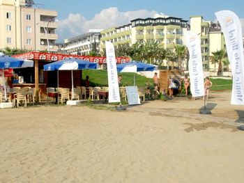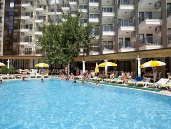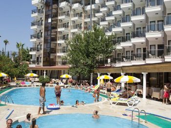 Всё. Пляж.(грязный) никто не смотрит. Бассейн работает с 11.00 до 18.00. Расслабляешся по времени от и до УЖАС. Обслуживание на пляже ноль. В Алании во всех отелях нет мест для отдыха на воздухе.