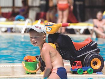 Сын был в восторге от бассейна, и то сто рядом с бассейном готовят снеки ( макароны, нагетсы , картошка по деревенски, фри) и бар рядом( все виды напитков ) разливают и подают .