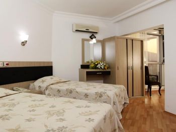 Даже не знаю с чего начать… старый Отель , ужасные маленькие номера - метров 12 не больше, с убитой мебелью, не работающей сантехникой, грязным лобби, лифт постоянно занят. На обед мест просто нет. Бассейн не пригоден для купания, так как в нем одновременно купаются 234 человека в любое время дня. Отель отчаянно нуждается в ремонте и мне совершенно не понятно чем занимается его хозяин. Мебель в холле отеля переместили из 70-х годов. Находится в лобби отеля не просто не уютно… это угнетающе … как будто ты находишься в старом общежитии. Не понимаю , неужели хозяину отеля вот прямо настолько все равно, что чувствуют гости? Что стоит обновить мебель, хоть как то покрасить стены , поставить ароматизатор и ловушки от мух? При этом Номер стоит не прилично дорого под стать ценам Отелей в 4 звёзды. Кстати фото номера не совпадают с теми, что указаны на сайте. Бронировать советую только семейный номер, как я понял эти номера единственные с более менее свежим ремонтом.