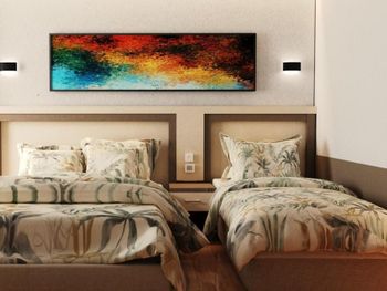 Что не понравилось: 7. Плохо мылись фрукты в столовой - на тарелках оставались грязные подтеки. 8. Живущий за кондиционером в гнезде голубь с птенцом. Заметили его после первой ночи, когда голубь обгадил вещи, висевшие на сушке, прикрепленной прямо под кондиционером. Ничего против птиц не имеем, пришлось максимально редко выходить на балкон, чтобы птенца не бросили, но данный факт говорит о том, что номер редко использовался до нас. 9. Матрасы на шезлонгах пляжа грязные. О дезинфекции вообще нет речи. 10. Двуспальная кровать поставлена в комнате с розетками под две односпальные кровати. Пришлось по возможности сдвигать ее с места, чтобы не спать, уперевшись головой в розетки и выключатели.