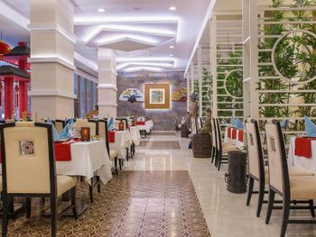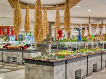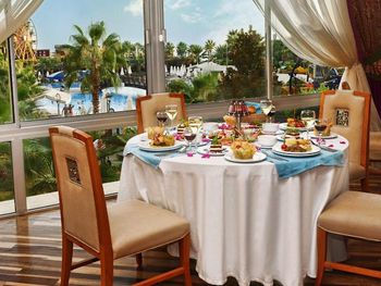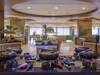 Завтрак, обед и ужин сервируются в виде "шведского стола" в главном ресторане. В других ресторанах вы сможете заказать по меню блюда китайской или итальянской кухни, а также турецкий кебаб. Напитки и закуски предлагаются в 5 барах и кафе на территории отеля.