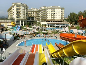 Курортный спа-отель Mukarnas находится непосредственно на берегу моря в Средиземноморском регионе. Здесь к вашим услугам отдельный песчаный пляж, открытые бассейны, водные горки и спа-салон. В архитектуре отеля прослеживается влияние сельджуков.