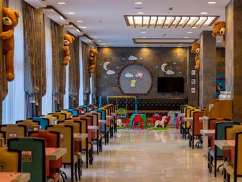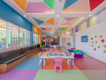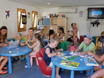 Есть еще на территории отеля как детский сад , оставлять детей можно вроде с 4 лет , мы с сыном заходили туда пару раз поиграть, с сыном все время были вместе … Меня ужаснуло , что там абсолютное безразличие к детям … я бы никогда там не оставила своего ребёнка ! Ситуация : работают две девушки , одна куда то уходит вообще на длительное время , вторая -Наталья остаётся , все время стоит за стойкой .