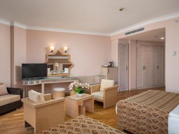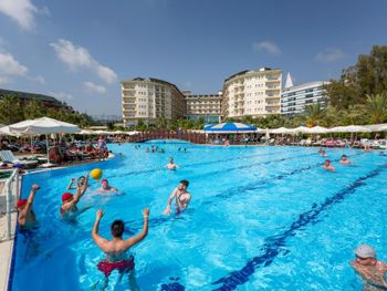 Ощущение перенаселённости отеля ,очереди в баре .И это в мае !!! Узкий -галечный пляж(мы поклонники пляжа Клеопатры) потому пляж не произвёл большого впечатления. Питание хорошее, НО ресторан устроен так что больше времени тратишь на поиск столика и блуждание по залу что бы взять салат-гарнир-горячее...крайне не удобно..