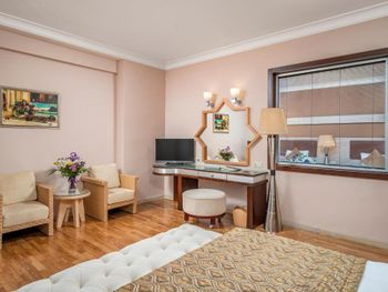 Элегантные номера отеля Mukarnas оснащены кондиционером, телевизором, мини-баром и бесплатным Wi-Fi. Каждый номер располагает балконом.