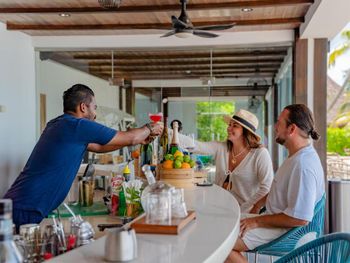 Обман!!! При бронировании номера, нигде не было сказано о том, что опция «все включено» на самом деле «не все включено»!!!!! Будьте внимательны при выборе этой опции, так как, после прибытия в отель, нам сообщили, что напитки в мини баре не включены в эту опцию!!! при этом на завтраки когда я просил дать мне стаканчик Coca-Cola мне говорили что бар у них открывается в 11:00 и заказать Coca-Cola можно только на баре. Один раз даже пришлось, в грубой форме, потребовать предоставления напитка, который, априори, должен входить в опцию «все включено»!!! Я собираюсь написать в службу поддержки и потребовать компенсации, за данное недоразумение!!! В первый раз сталкиваюсь с подобным!!! В некоторых отелях, даже вина из мини бара, были включены в стоимость проживания, по опции «всё включено»!!! Спуск из водного бунгало в океан вообще неудобный!!! Когда я попросил что-то с этим сделать, мне сказали, что у них есть куча пляжей, которыми мы можем воспользоваться, на что я объяснил, что я не для этого снимал водный бунгало, чтобы ходить купаться на песчаный пляж! Больше никогда не поеду туда отдыхать и никому не советую!!!